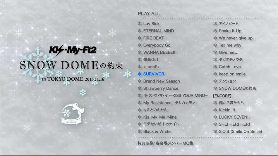 英文片名:Kis-My-Ft2 – SNOW DOME no Yakusoku IN TOKYO DOME 2013.11.16
