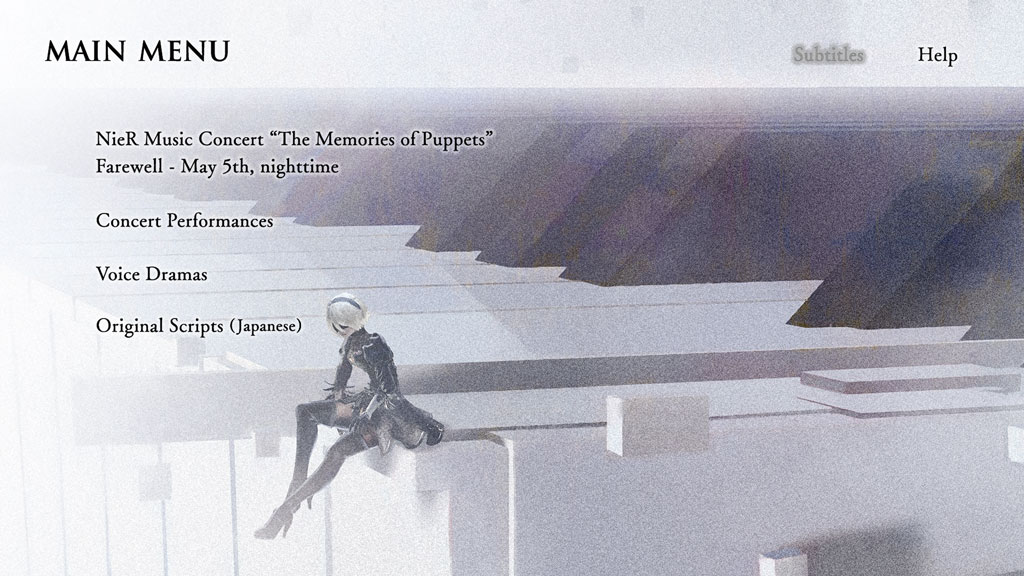 The sold-out NieR concert “Doll’s Memories” held on May 5, 2017 at Tokyo’s Yomiuri Hall. It includes a selection of the most enchanting musical pieces from NieR, and NieR: Automata performed by supreme musicians, and singers. Relive this touching event, and feel its impressive mood.
