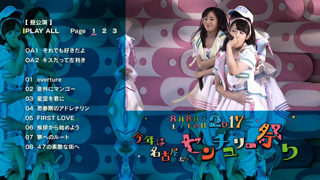 Disc 3 contains 8gatsu 8ka wa Eight no Hi 2017 Kotoshi wa Nagoya da! Century Matsuri Hiru Kouen, which was held on August 8, 2017.