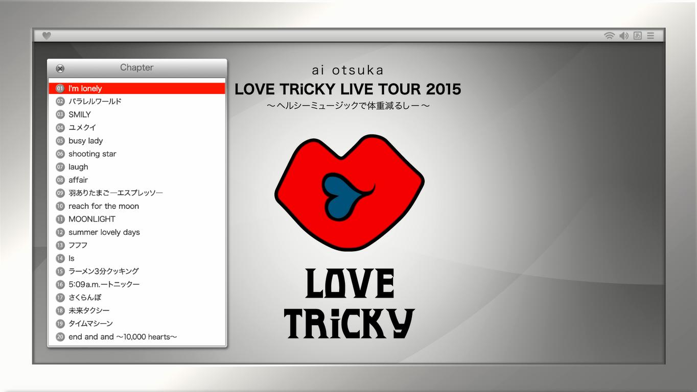 Features Ai Otsuka’s two concerts “LOVE TRiCKY LIVE TOUR 2015 – Healthy Music de Taijyu Herushi -” and “LOVE IS BORN – 12th Anniversary 2015 -.” Contains 42 tracks total, including an unreleased song “Hibi, Ikiteireba.” Also includes audio commentary by Ai Otsuka herself. Comes with a 24-page booklet.