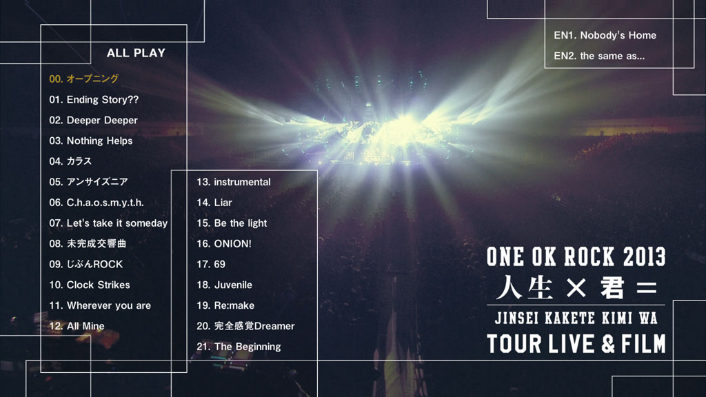 Disc1:「ONE OK ROCK 2013 “人生×君=” LIVE」