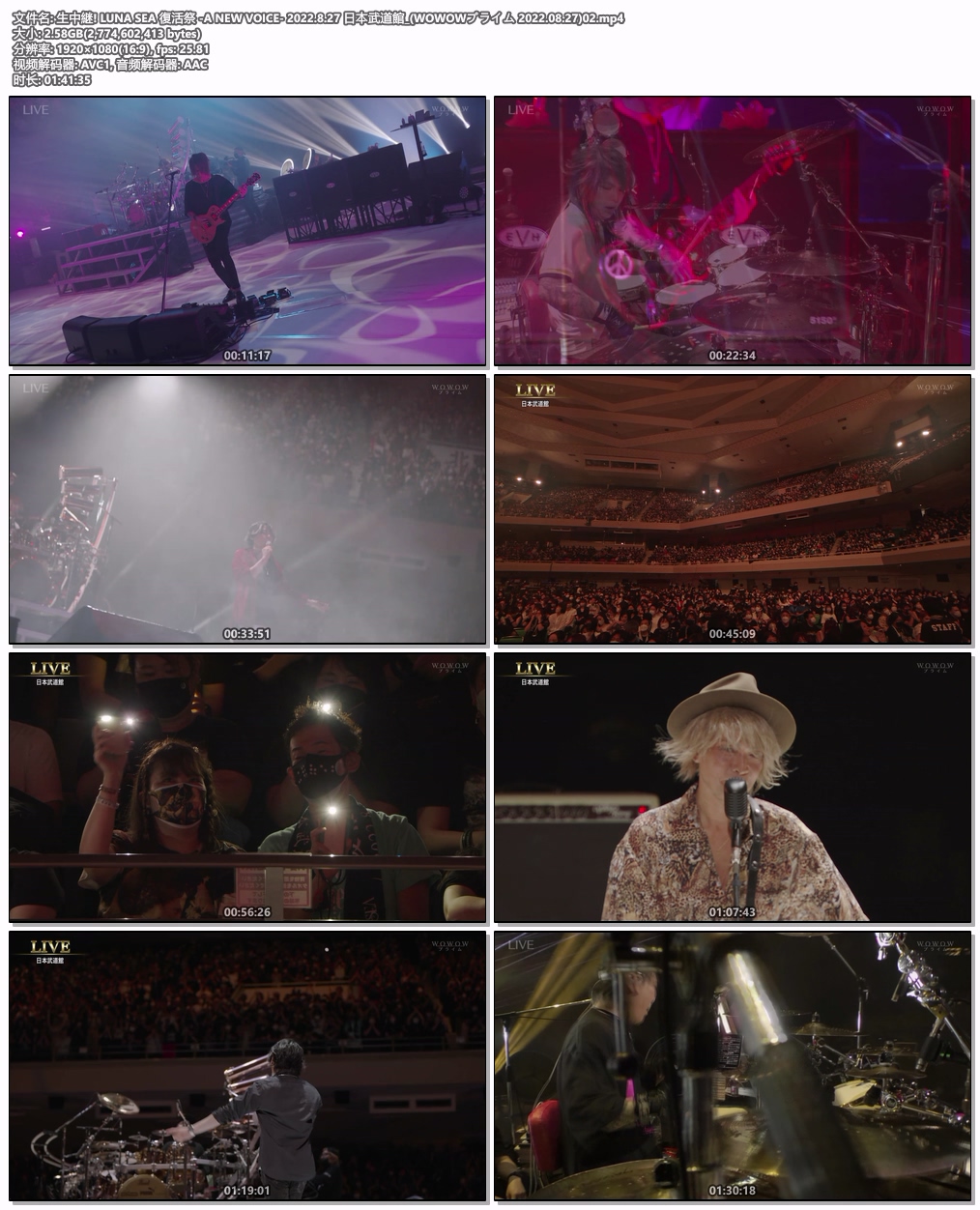 Complete name : I:\t生中継! LUNA SEA 復活祭 -A NEW VOICE- 2022.8.27 日本武道館_(WOWOWプライム 2022.08.27)02.mp4