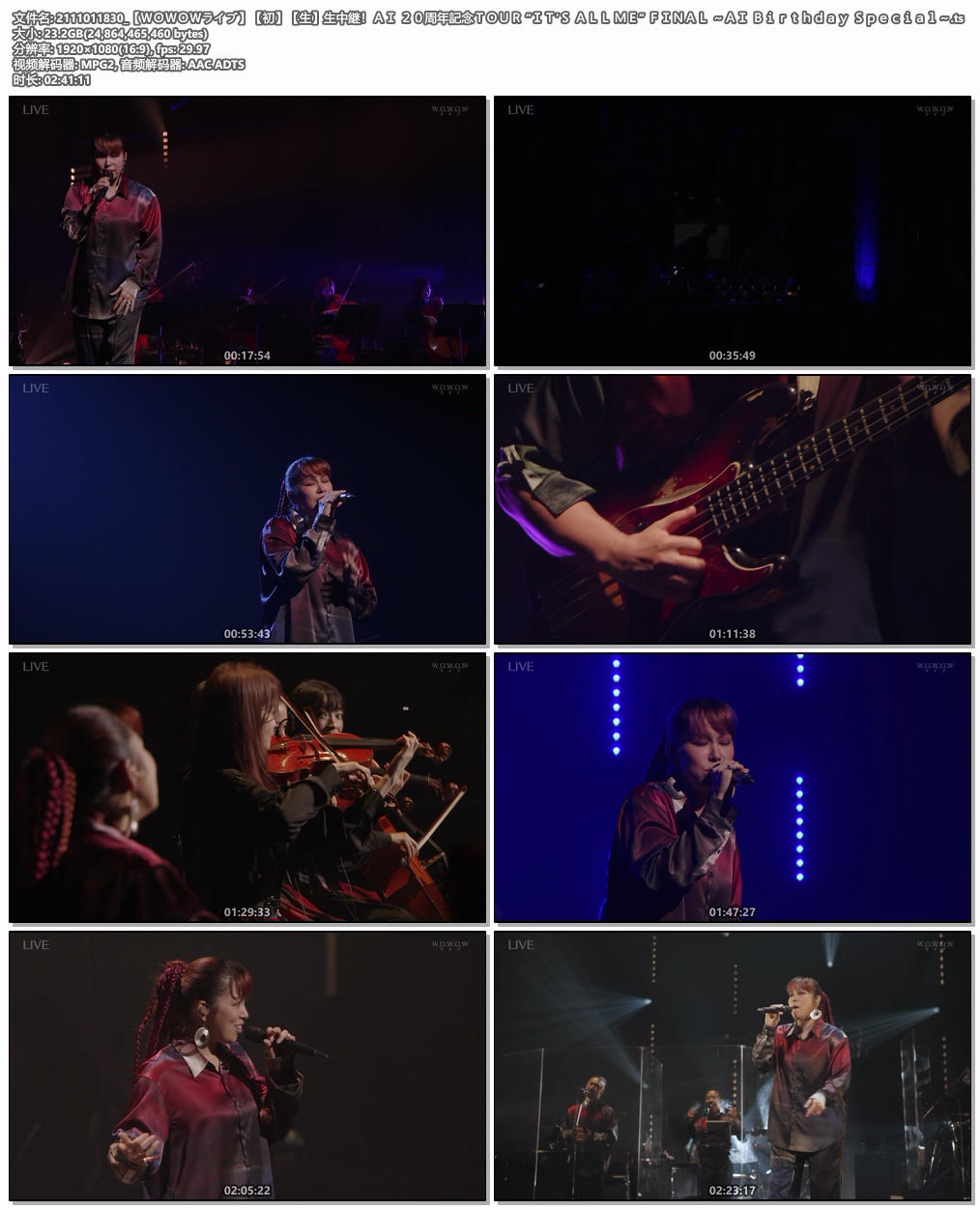 Complete name : I:\tougao\ANN-2020-23.1\2111011830_【WOWOWライブ】【初】【生】生中継!AI 20周年記念TOUR “IT’S ALL ME” FINAL ~AI Birthday Special~.ts