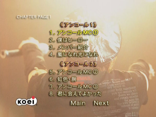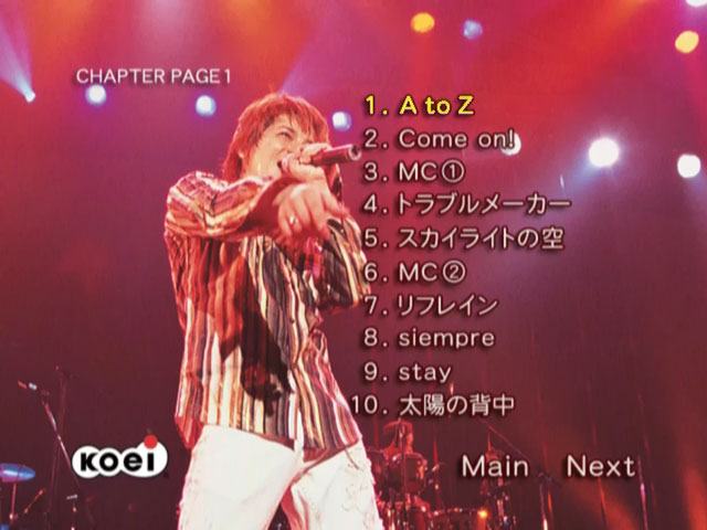 Footage of the final performance of seiyuu and singer Naozumi Takahashi‘s first tour, held at Akasaka BLITZ on February 2, 2003. It was released in two editions: a limited edition (which included all songs and MCs in an uninterrupted flow, as well as some rehearsal footage and an interview taken a month after the tour’s conclusion, where Naozumi shares his thoughts on touring), and a standard edition (which cut out several songs entirely — see below — and edited all MCs out of the main part of the show, bundling them together as a separate feature selectable through the menu) on May 28, 2003. The release reached #10 on Oricon’s Music DVD chart.