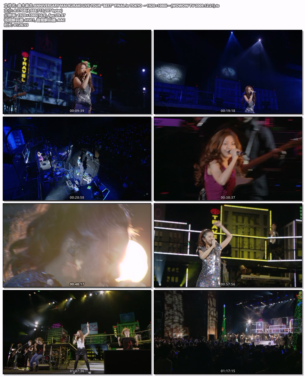Complete name : I:\tougao\倉木麻衣 ANNIVERSARY MAI KURAKI LIVE TOUR “BEST” FINAL in TOKYO\倉木麻衣 ANNIVERSARY MAI KURAKI LIVE TOUR “BEST” FINAL in TOKYO ~1920×1080i~(WOWOW TV 2009.12.21).ts