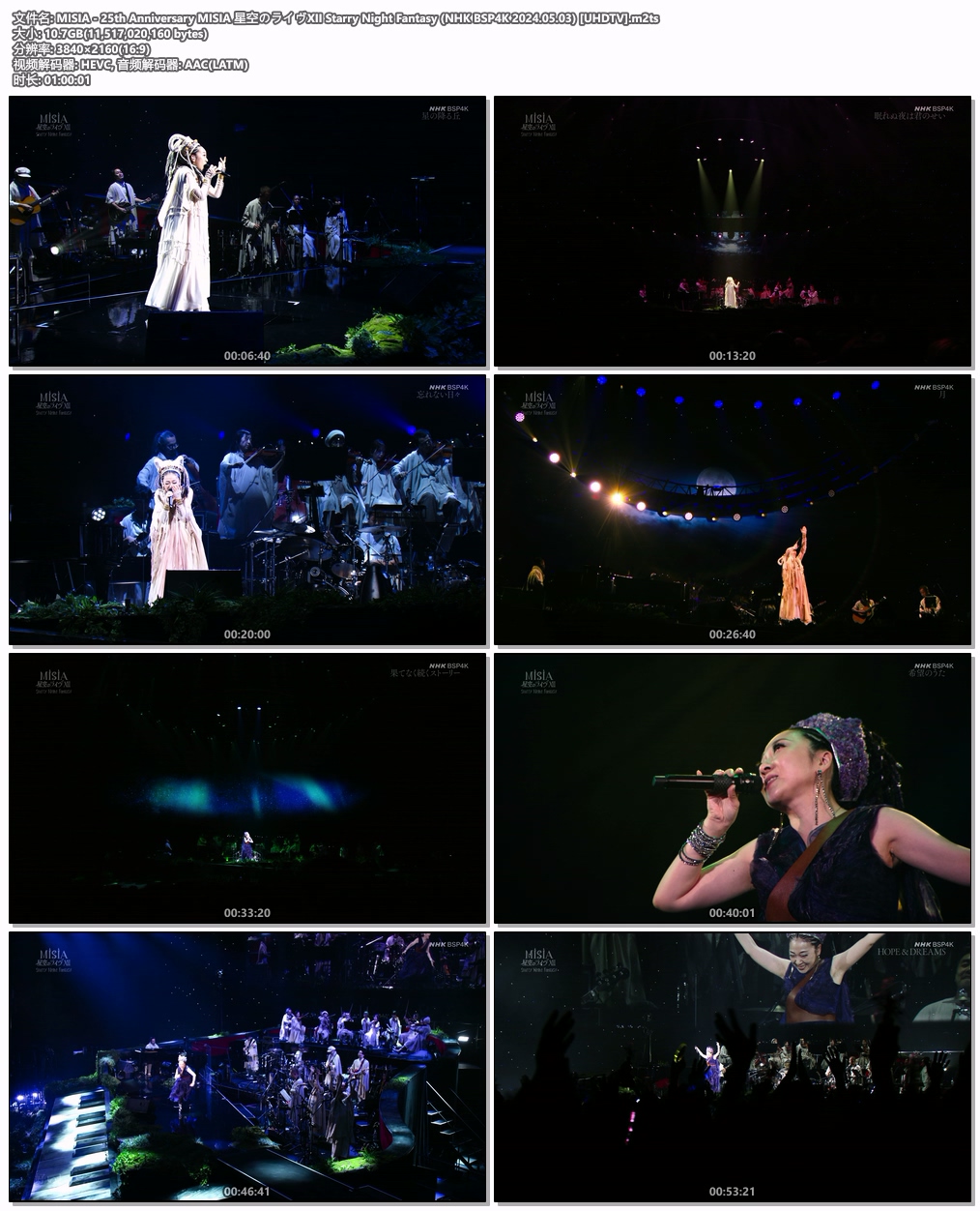 影片名称 : MISIA 25th Anniversary MISIA 星空のライヴXII Starry Night Fantasy (NHK BSP4K 2024.05.03) [UHDTV]