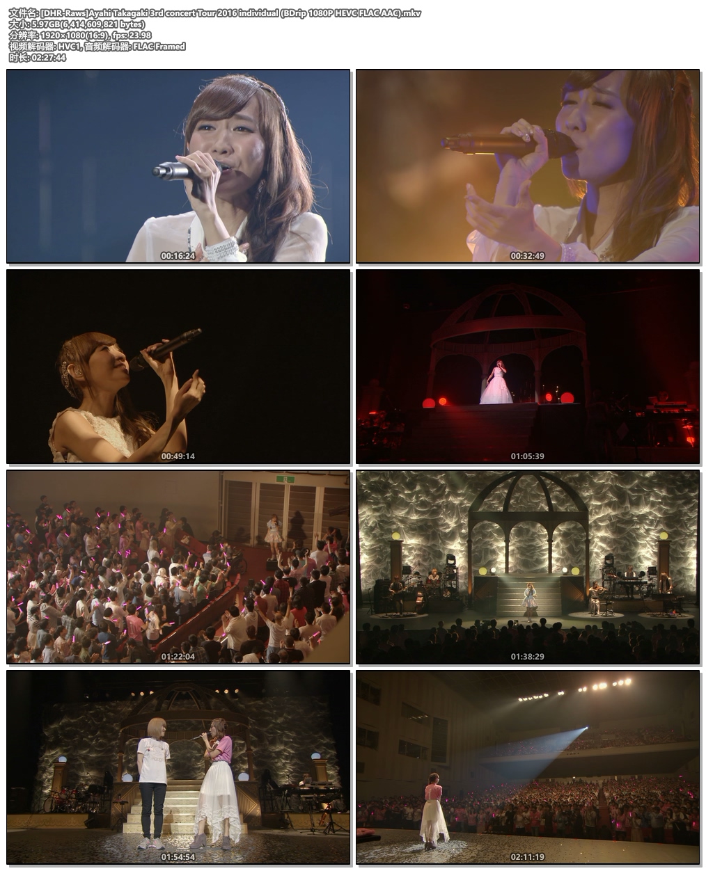 Complete name : Y:\AYA-2016-7.05\[DHR-Raws]Ayahi Takagaki 3rd concert Tour 2016 individual (BDrip 1080P HEVC FLAC AAC)\[DHR-Raws]Ayahi Takagaki 3rd concert Tour 2016 individual (BDrip 1080P HEVC FLAC AAC).mkv