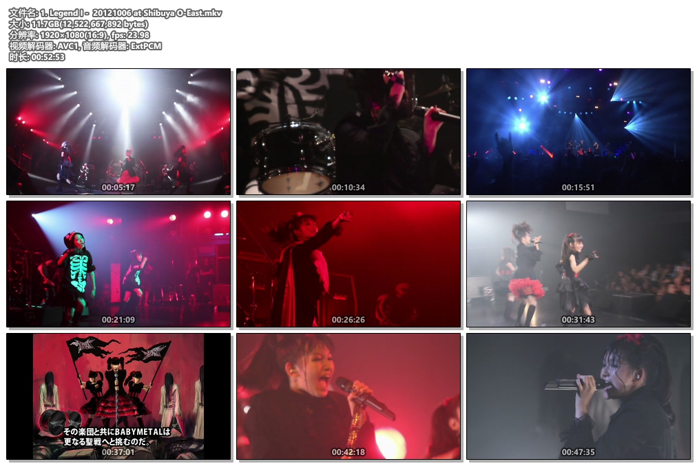重金属摇滚暗黑天使BABYMETAL的首张Live DVD《Live -Legend I, D, Z Apocalypse-》,收入传说的演唱会《LEGEND I、D、Z》系列三部曲,2012年10月6日在Shibuya O-EAST举行的「LEGEND “I”」、2012年12月20日在Akasaka BLITZ举行的「LEGEND “D” SU-METAL圣诞祭」和2013年2月1日在Zepp Tokyo举行的「LEGEND “Z”」。