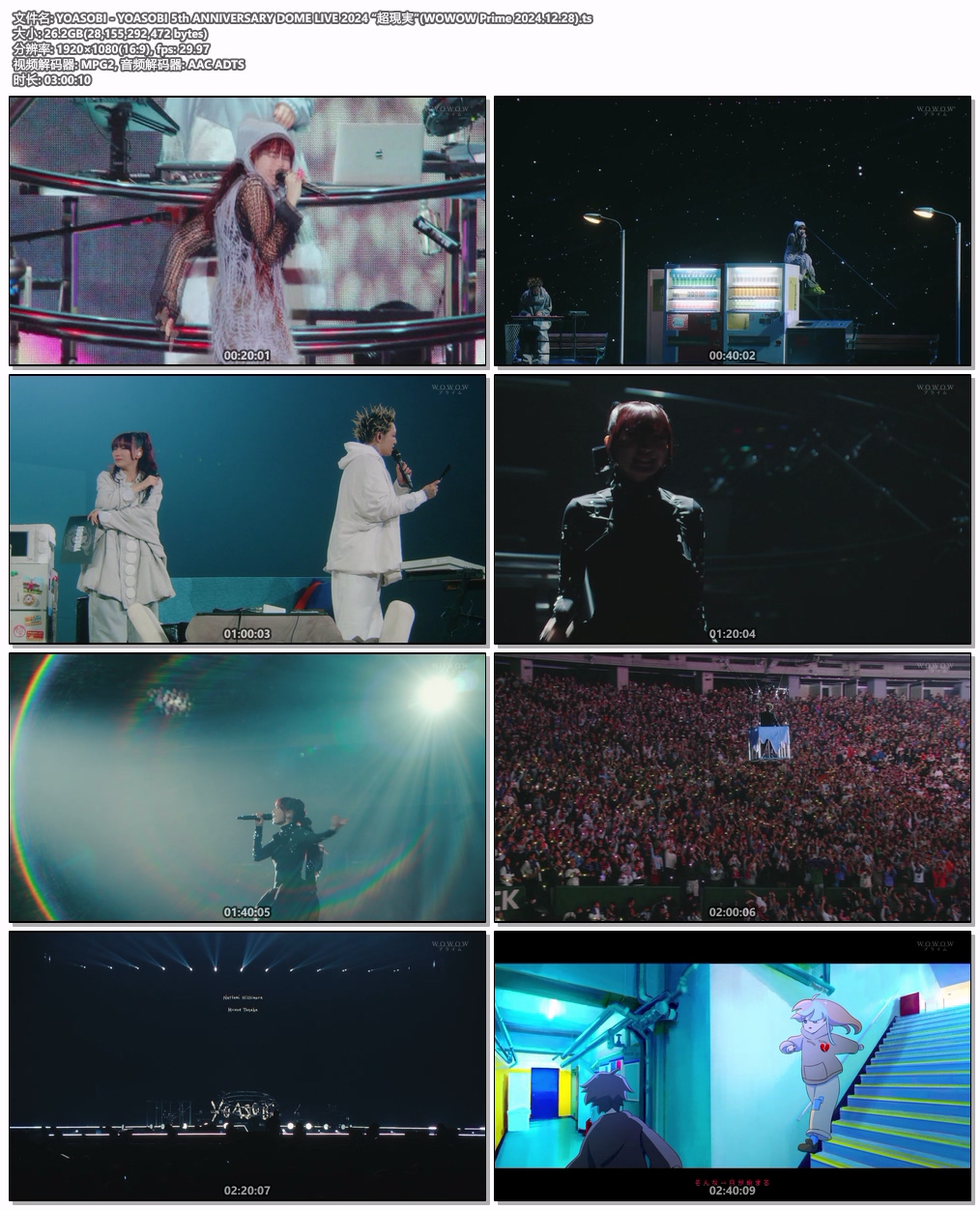 今年5月、デビュー曲「夜に駆ける」が Billboard JAPAN チャートにおいて史上初のストリーミング累計再生回数11億回突破を果たしたほか、全世界で総再生回数100億回超えを記録している YOASOBI。2019年12月のデビュー当初は配信リリースやストリーミングが活動の中心だったが、いまや彼らのライブは大人気を博しており、リアルな活動の場は国内からアジア、さらに世界へと広がりを見せている。今年8月には、演劇・ミュージカル界の最高の栄誉、トニー賞授賞式が行なわれることでも知られるニューヨークのラジオシティ・ミュージックホールでライブを行ない、絶賛を受けたばかりだ。そして、結成5周年を迎える10月、いよいよスタートするのが初のドーム公演。世界中が注目する彼らのパフォーマンスが、巨大会場でどのように花開くのか。WOWOWで見届けていただきたい!