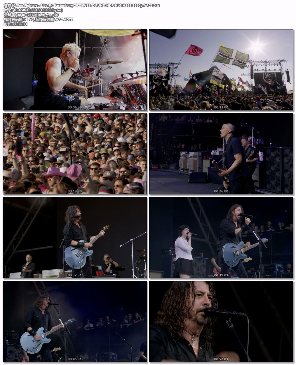 英文片名:Foo Fighters – Live @ Glastonbury 2023 WEB-DL UHD HDR HLG H265 2160p AAC2.0