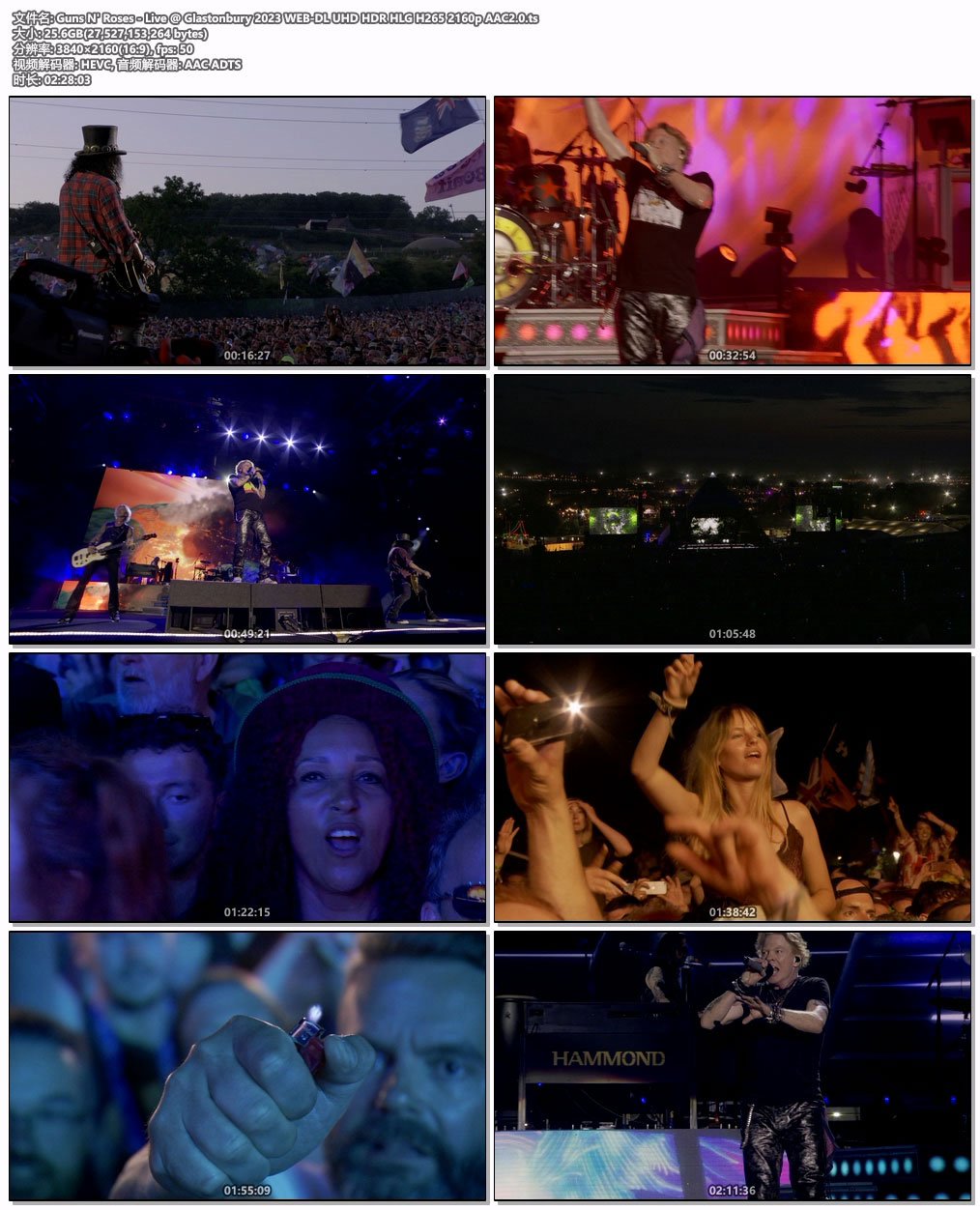 英文片名:Guns N’ Roses – Live @ Glastonbury 2023 WEB-DL UHD HDR HLG H265 2160p AAC2.0