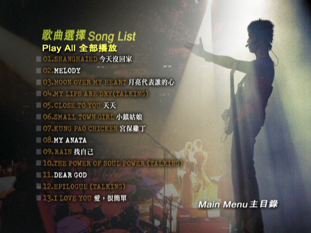 2004年8月14日正式启动的「Soul Power」个人售票巡回演唱会,陶喆首次登上他的出生地-香港极具象徵意义的的红磡体育馆,与来自各地精挑最棒的乐手一起演出一场「音乐至上」的听觉飨宴,演唱所有成名代表作。原本只打算在8月14、15日举行两场的香港演唱会,由于门票预售反应热烈,主办单位决定顺应歌迷的要求于8月16日加演一场。这套DVD 为港版发售版本,与台版不同的是碟2不是幕后花絮,而是将演唱会收录了原声原唱和卡拉ok现场伴奏,分为上下两碟,,画面也是双视角有无字版和KTV大字幕版,让你可以享受演唱会的同时在家享受现场乐队伴奏尽情唱K的体验,值得收藏