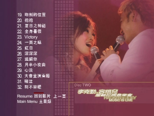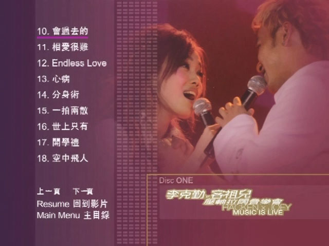 继李克勤和容祖儿跨公司合唱《刻不容缓》后,两大实力派唱将再度携手,[李克勤×容祖儿2005演唱会],现场共同激情演绎音乐经典之作,合唱及独唱都动听非常!