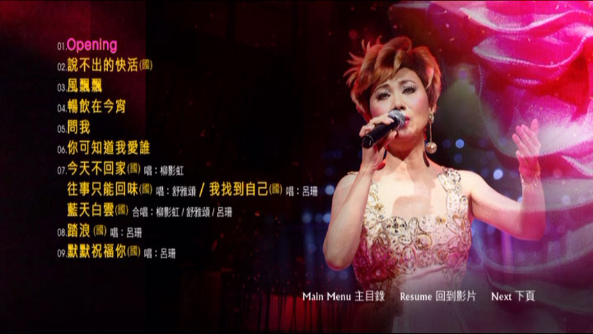 7. 今天不回家 (国) 唱: 柳影虹 / 往事只能回味 (国) 唱: 舒雅颂 / 我找到自己 (国) 唱: 吕珊 / 蓝天白云 (国) 合唱: 柳影虹/舒雅颂/吕珊
