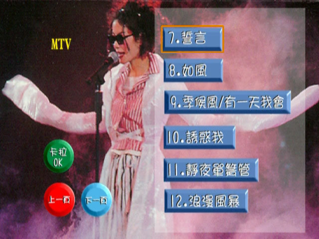 曲目顺序与港版不同,有欣赏版/卡拉OK版双视角,卡拉OK视角的字幕和公司图标也和港版不同