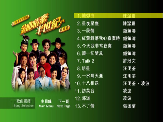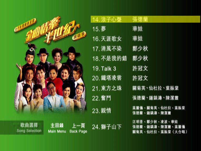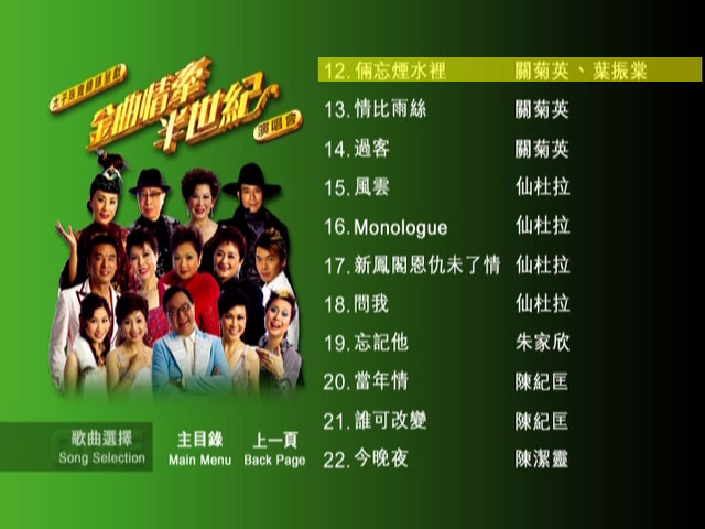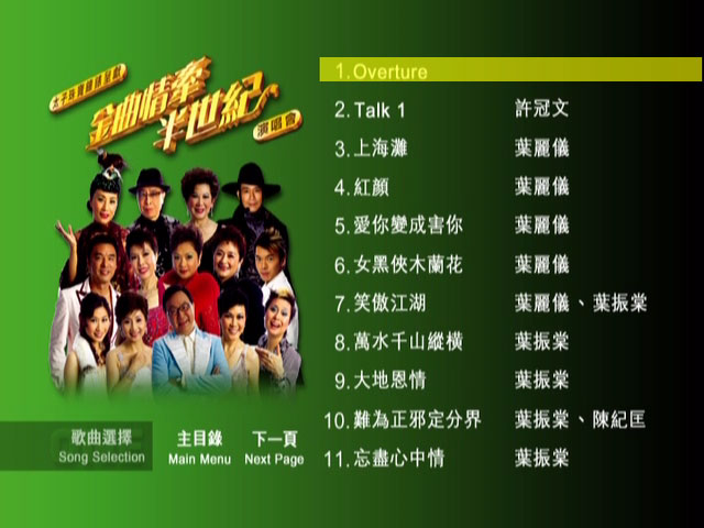 2005年12月举行的《金曲情牵半世纪》演唱会,因大受欢迎而由四场加码至九场,十多位有份量巨星出场献唱经典金曲,好歌不厌百回听!叶丽仪的「上海滩」、叶振棠的「难为正邪定分界」、关菊英的「俩忘烟水裡」任何年纪的香港人都必定耳熟能详。汪明荃、郑少秋至今仍活跃于电视圈,这次便演绎一些传颂一时的作品。许冠文拿出搞笑的看家本领表现三段「栋笃笑」,还重唱弟弟许冠杰的「铁塔凌云」。仙杜拉以Rap演唱「新凤阁恩仇未了情」为粤曲注入新意,唱家班出身的陈洁灵、锺镇涛唱功自然了得,濶别香港乐坛的张德兰、华娃 (黄霑前妻)、凌波风采再现人前。想再次重温历久常新的的粤语金曲或风采依然的昔日明星,万勿错过《金曲情牵半世纪》卡拉OK DVD!
