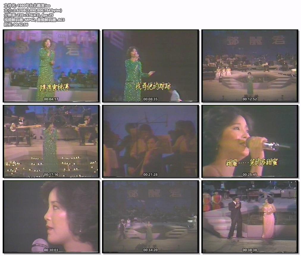 邓丽君 – 1980年台北慈善义演演唱会 [DVD ISO 3.62G] 台湾演唱会本碟收录了邓丽君1980年台北国父纪念的慈善义演演唱会,总时长为142分钟,没有删减,首播录製的完整版珍贵资料。 资源下载下载价格15 金币立即购买1980邓丽君