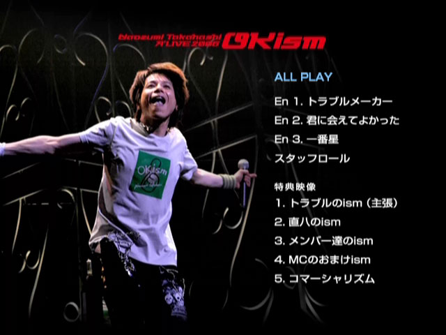 Seventh live DVD of seiyuu and singer Naozumi Takahashi, featuring footage from his 2006 tour “OKism”, which was held from June 9 to July 14.