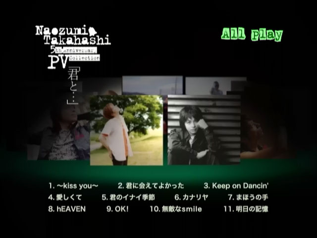 An (almost) complete collection of all the music videos Naozumi filmed from his 2002 debut “~kiss you~” through 2006’s “Ashita no Kioku”. Technically, this is missing his second PV, “Rainy day”…but that video looks like it had -$20 budget, so really, you’re not missing much. (Check here if you really want it. ninja.gif ). This release hit #7 on the Oricon’s Music DVDs chart. The first press version came with a bonus CD, featuring a demo version of his then-upcoming single, “Kimi to…”.