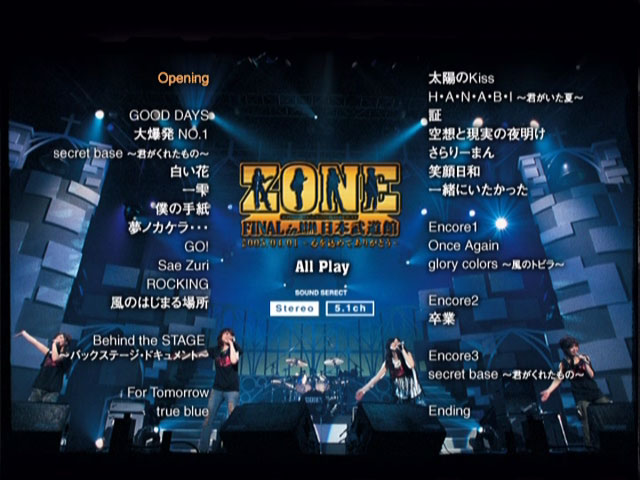 2005年4月1日に行われたZONE、FINALライブ日本武道館公演を収録したDVDがリリース。