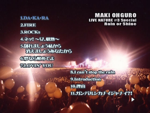 1997年8月1日、有明で行われた“大黒摩季”のファーストライブを完全収録した作品。「永遠の夢に向かって」「熱くなれ」「ら・ら・ら」ほか全19曲収録。