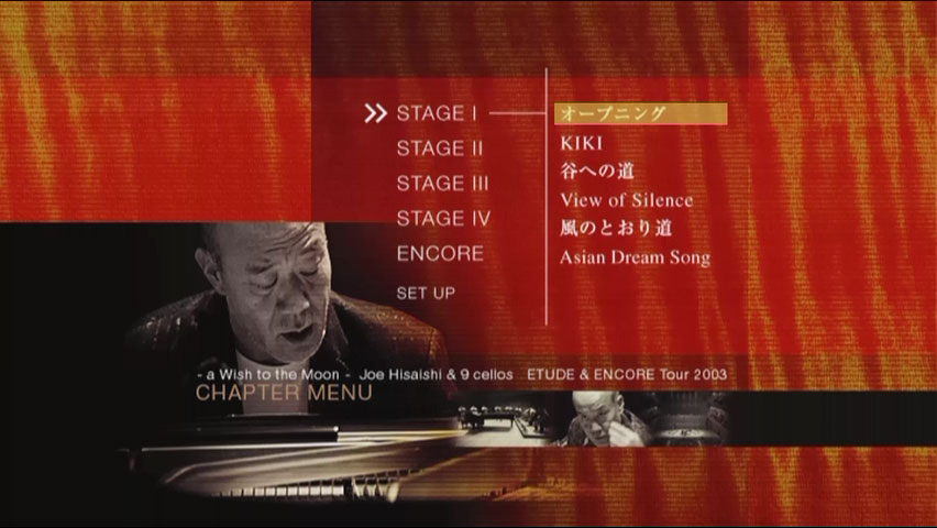 《久石让月光星愿音乐会》收录的是2003年4月16日久石让在TOKYO OPERA CITY音乐厅的演出实况;全场可分为四个STAGE,曲目包括《永远典藏精选辑/ENCORE》,《月光星愿/ETUDE》及过往知名电影与活动配乐,并配合九位大提琴家的合奏,展现与先前专辑中截然不同的全新感受;值得一提的是,这一场演奏会最後的安可曲部份更是令人惊喜连连,在演奏“TOTORO”一曲前,身旁出现了一只龙猫布偶的久石让作势要大家面露微笑,随著乐音彷佛也被带回童稚时光的全场观众与乐手,皆不自觉的随著音符摇摆起来;而在最後安可曲演奏完毕,大提琴也全数退场後,禁不住乐迷热情的久石让也再度回到舞台,独自演奏了一曲久石让鲜少公开演奏的传说经典“只想看著你”,为整场演奏会划下完美的句点;而在DVD中也收录了多段的幕後花絮,乐迷可藉此一窥久石让排练的过程,以及上场前准备的专注神情!
