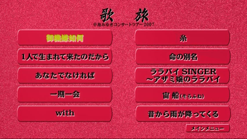 中岛美雪 2007 歌旅演唱会 Utatabi – Nakajima Miyuki Concert Tour 2007 [2DVD ISO 10.7GB] 日本演唱会2008年6月に発売されたDVD『歌旅 -中島みゆきコンサートツアー2007-』をBlu-ray Disc化! 2007年9月29日岐阜県可児市文化創造センターを皮切りに12月27日福岡サンパレスまで全32公演、約10万人を動員した「中島みゆきコンサートツアー2007」から、12月18日、19日東京国際フォーラムAでのコンサートの模様を、2枚組で全19曲収録。「地上の星」「宙船(そらふね)」「ファイト!」「命の別名」「誕生」と名曲・ヒット曲満載。 资源下载下载价格10 金币立即购买2007中岛美雪歌旅