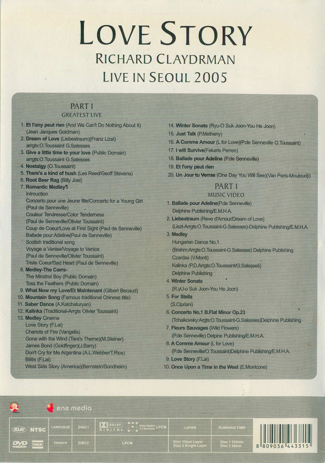 理查德·克莱德曼 2005 首尔音乐会 Love Story RICHARD CLAYDRMAN Live in Seoul 2005 [DVD ISO 5.66GB] 欧美演唱会 资源下载下载价格10 金币立即购买2005love story理查德克莱德曼