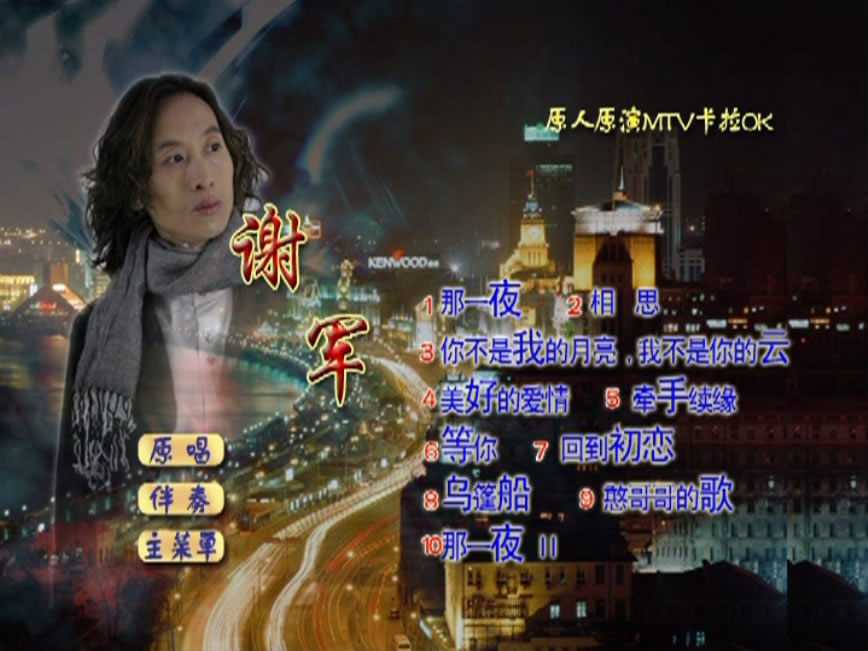 谢军 – 原人原演MTV卡拉OK (孔雀廊) [KTV][DVD ISO 2.90G] 音乐专辑曲目:1. 那一夜 2. 相思 3. 你不是我的月亮我不是你的云 4. 美好的爱情 5. 牵手续缘 6. 等你 7. 回到初恋 8. 乌篷船 9. 憨哥哥的歌 10. 那一夜 资源下载下载价格10 金币立即购买原人原演谢军