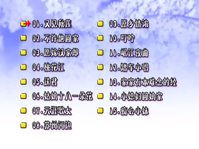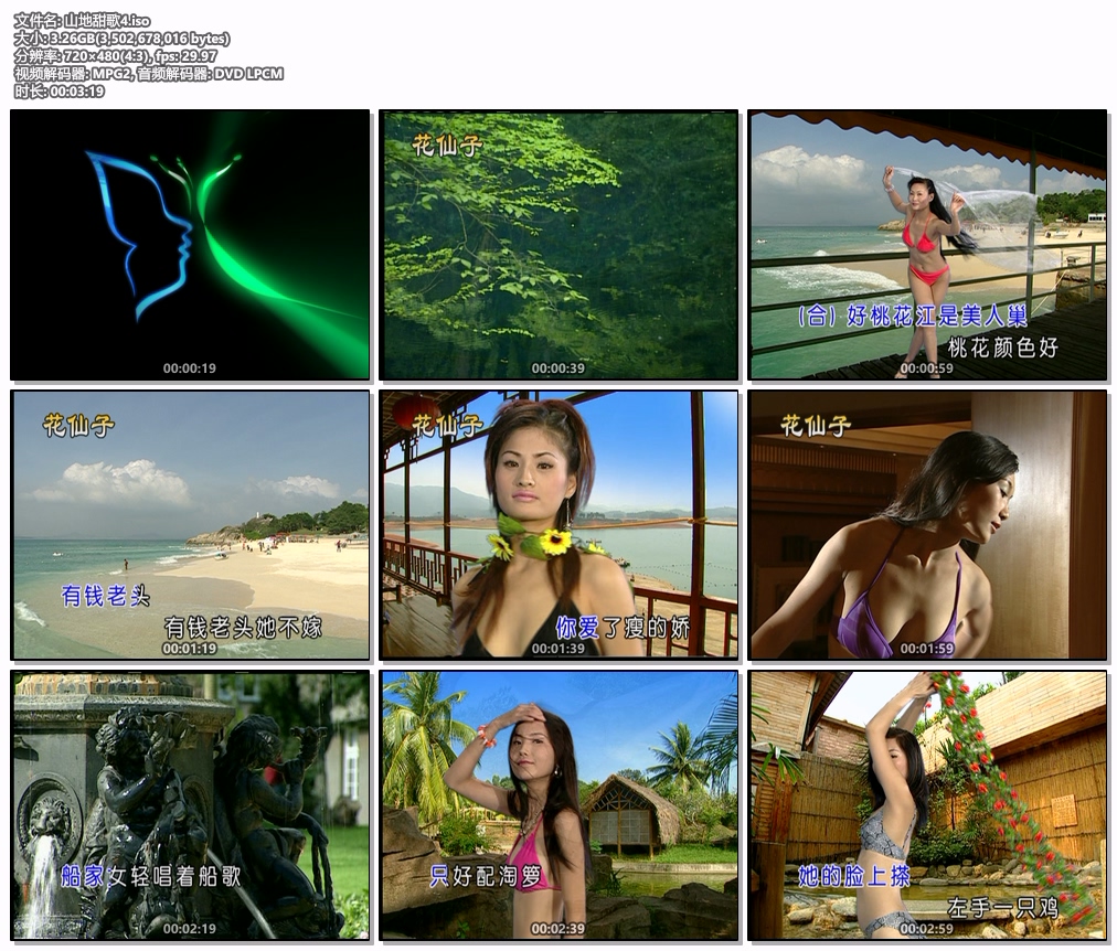 花仙子 – 山地甜歌 第4辑 卡拉OK [DVD ISO 3.26GB] 音乐专辑1. 又见秋莲 2. 不许他回家 3. 愿嫁庄稼汉 4. 桃花江 5. 送君 6. 姑娘十八一朵花 7. 天涯歌女 8. 苏州河边 9. 原乡浓情 10. 叮咛 11. 岷江夜曲 12. 踏车小唱 13. 家家有本难念的经 14. 小媳妇回家娘家 15. 痴心小妹 花仙子 – 山地甜歌第4辑,原版高清 资源下载下载价格10 金币立即购买卡拉ok山地甜歌花仙子