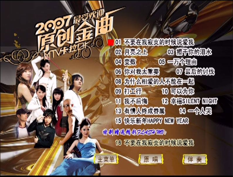 群星 – 2007最受欢迎原创金曲 MTV卡拉OK (孔雀廊) [KTV] [DVD ISO 3.81G]