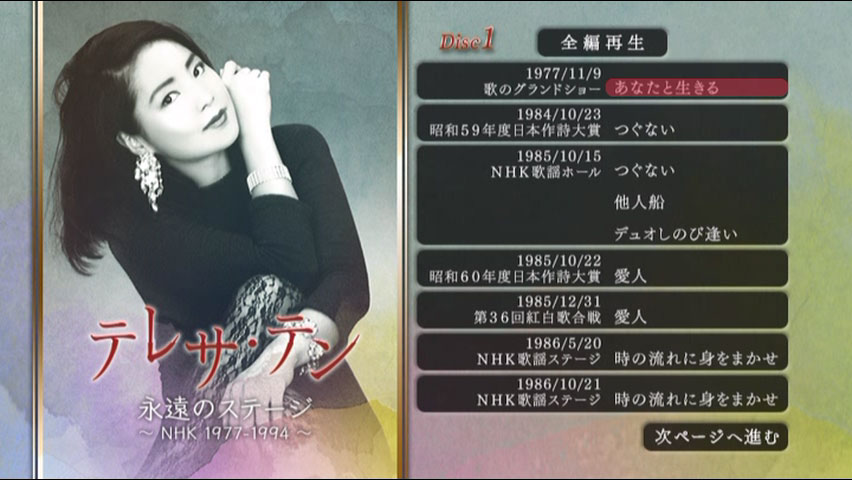 NHK に残るテレサ・テンの番組出演時の歌唱映像を余すことなく収録した映像集