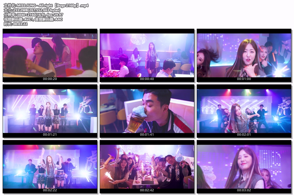 Complete name : I:\MISS.JUNG – All right 【Bugs 2160p】.mp4