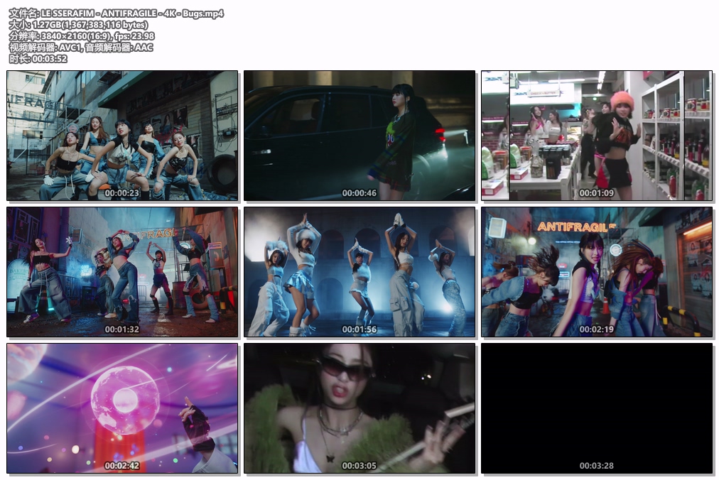 Complete name : I:\tougao\LE SSERAFIM – ANTIFRAGILE – 4K – Bugs.mp4